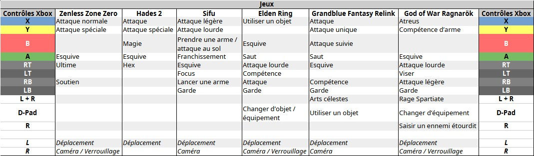 À titre de comparaison, dans des jeux d’actions solo : “God of War Ragnarök”(2022) a 10 actions de combat ; “Grandblue Fantasy Relink”(2024) a 9 actions de combat ; “Elden Ring”(2022) et “Sifu”(2023) ont 8 actions de combat ; et “Hadès 2”(2024) a 5 actions de combat.