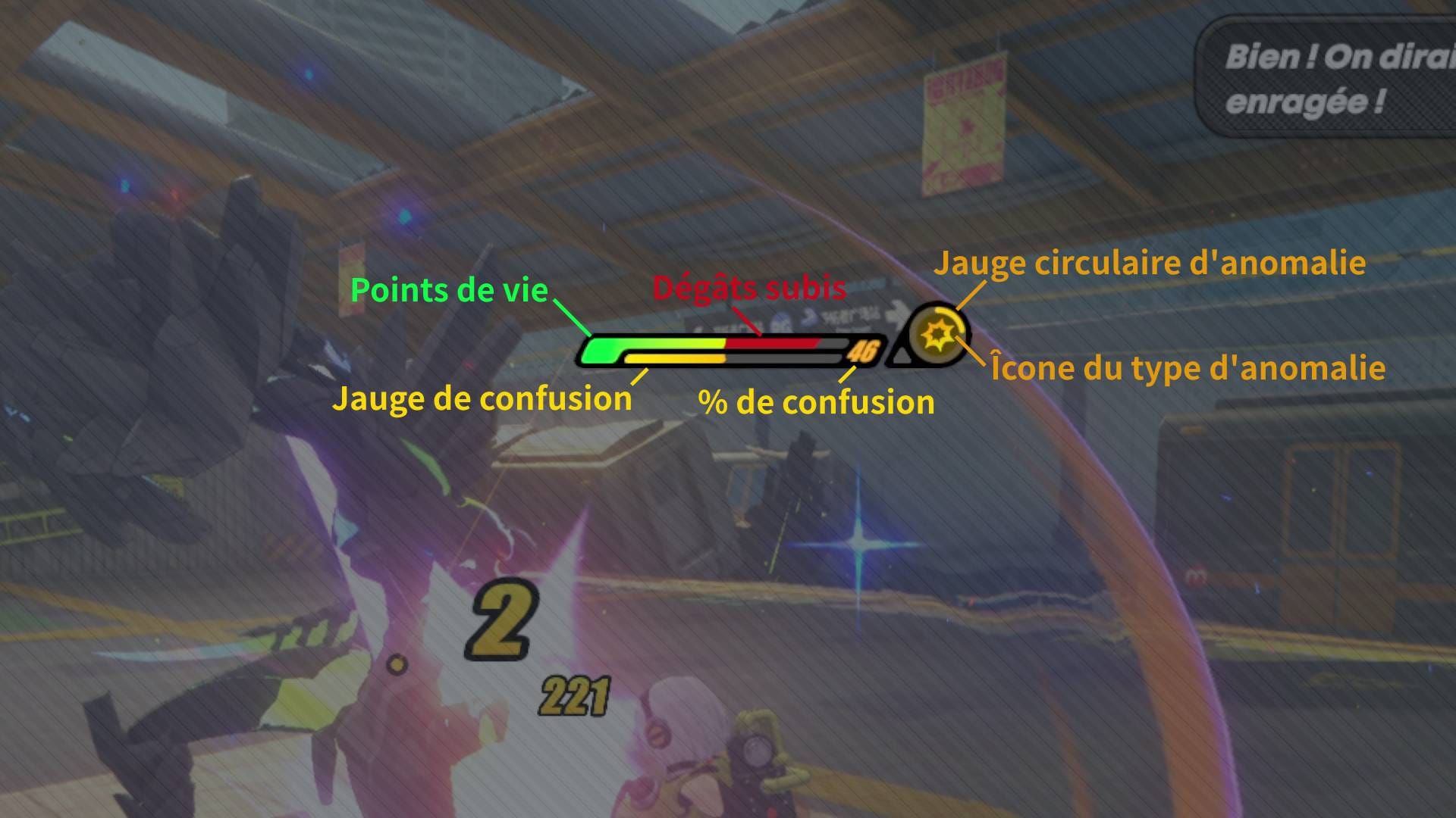 L’état le plus important en combat est l’étourdissement, qui se déclenche lorsque la jauge de confusion est à son maximum. Cet état est essentiel, car il interrompt les attaques et rend l’ennemi immobile pendant un certain temps. Ce dernier prend plus de dégâts des attaques et plus d’effets d’anomalie.