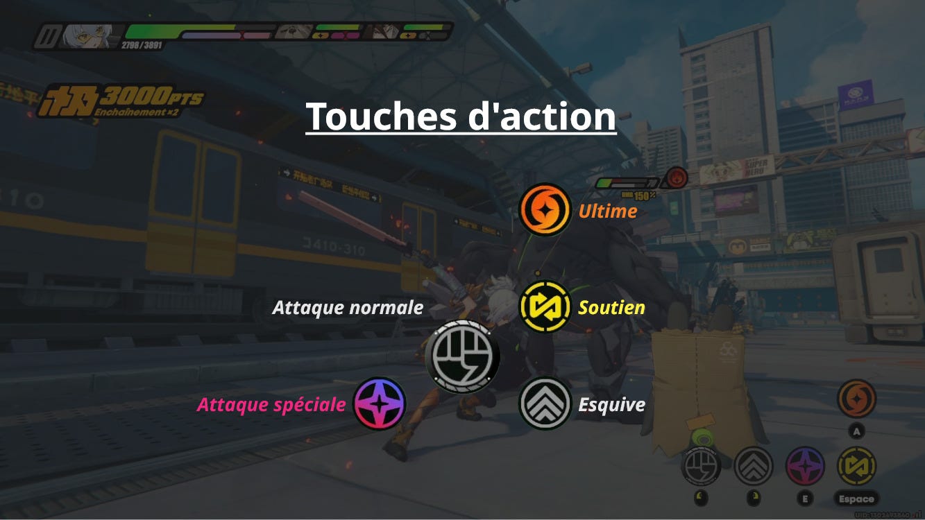 On se retrouve avec 14 actions de combat disponibles pour chaque personnage. De quoi bien varier les possibilités de jeu des joueurs et joueuses. Certains personnages possèdent des actions exclusives supplémentaires, mais utilisent toujours seulement 5 touches.